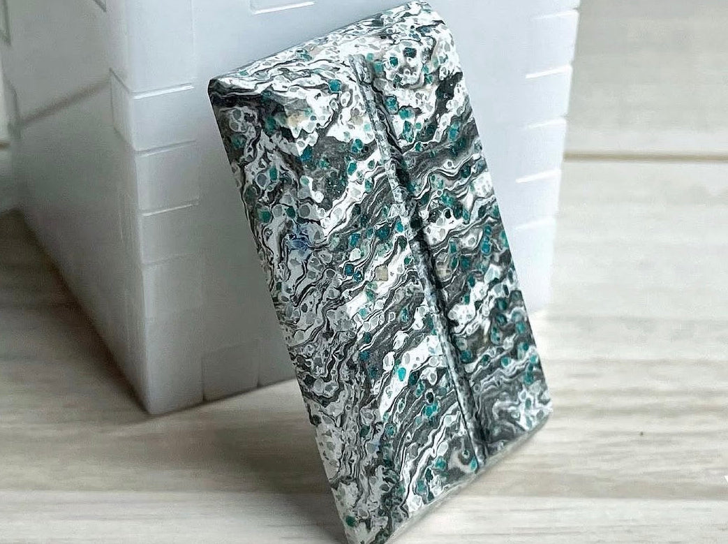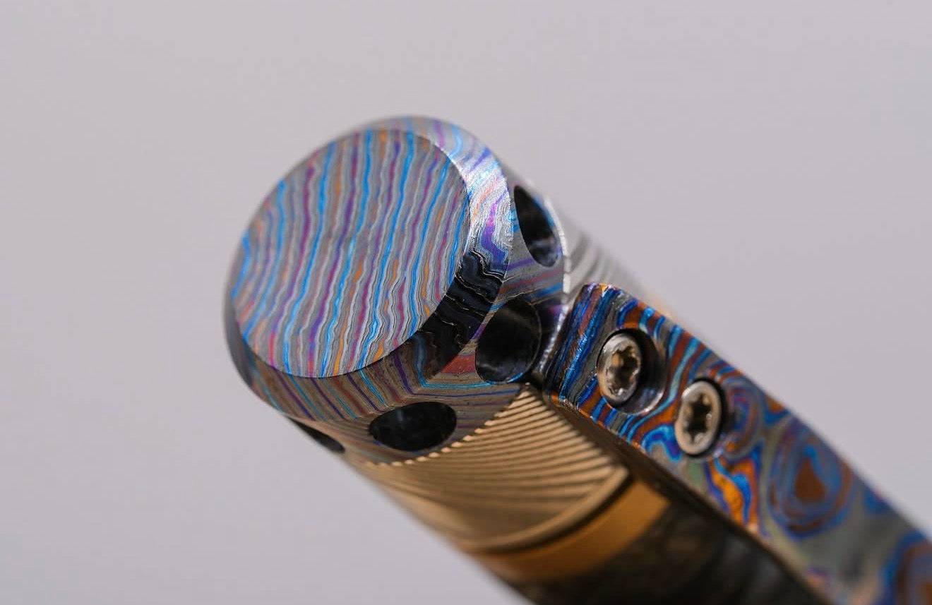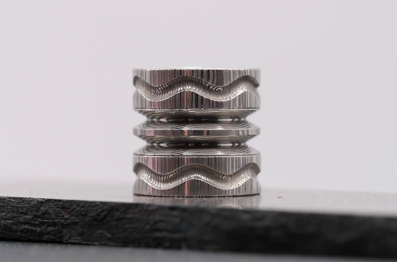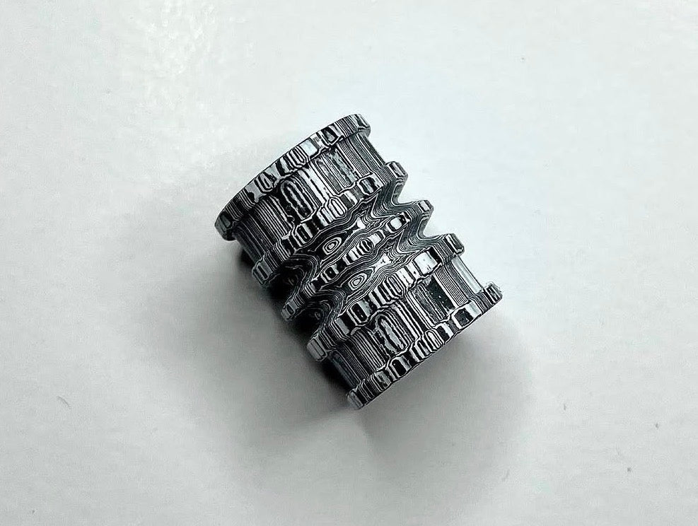 First collaboration with Armstrong Metal Works, sent a piece of Space Chalk for him to turn into a bead. Inspired, I pivoted from ring making into the EDC (everyday carry) niche.