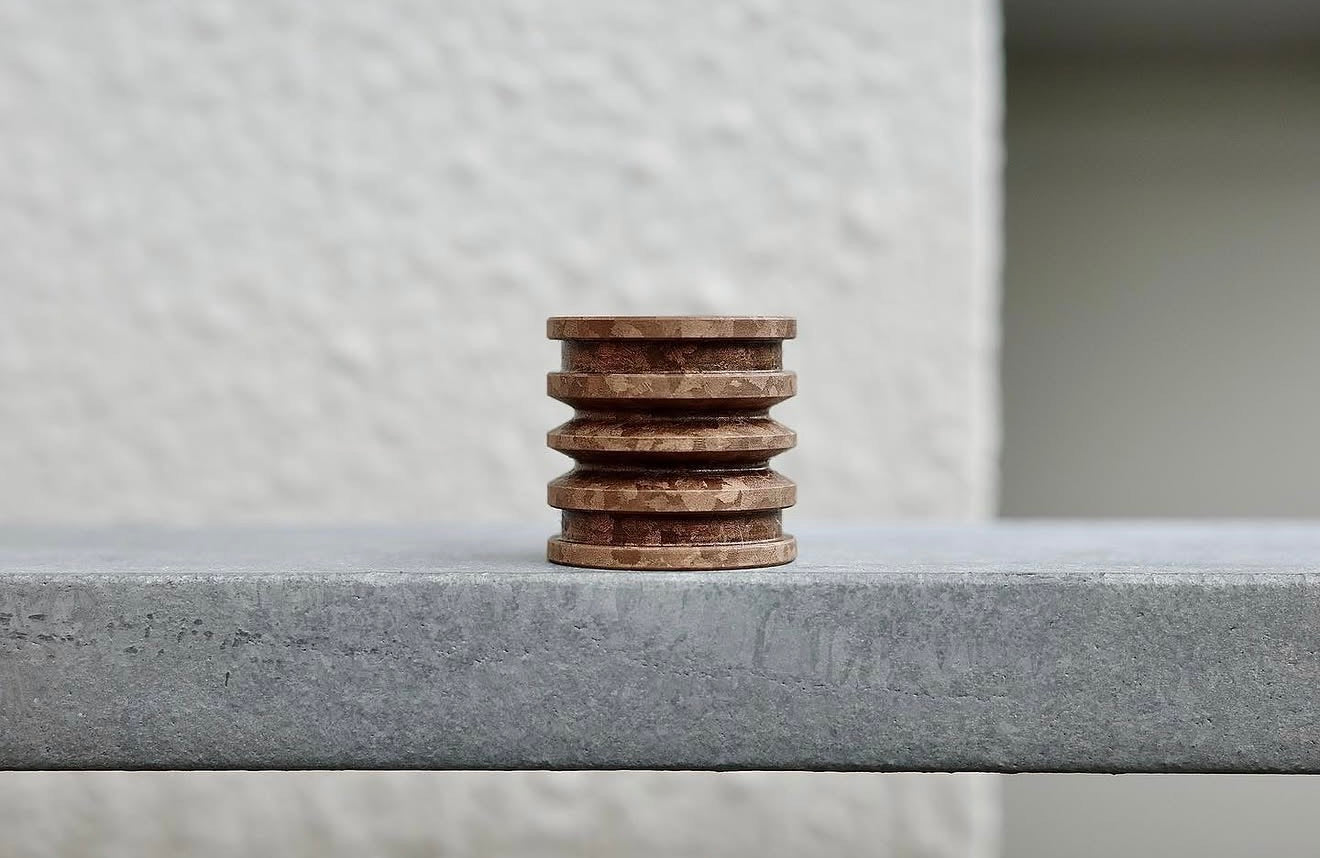 Created an original material, first called “Space Rock”, a multicomposite patterned material made of resin, ceramic, and metal. Later renamed “Space Chalk”.